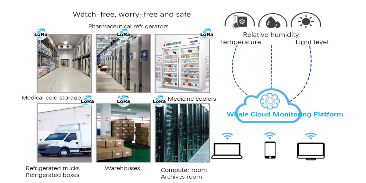 Large enterprises have their own server room centers, and the network information department needs to face many server room management problems, such as fire and open fire, ventilation and dust, fire due to high temperature, unstable power supply due to UPS and battery failure, etc. In order to ensure stable operation of the data center, real-time monitoring of the data center is needed to timely find the hidden dangers and prevent them before they happen. The humpback whale large server room temperature and humidity monitoring solution consists of an IOT transmission terminal, which is connected to the base station to realize communication and upload data to the cloud platform in real time, and the monitoring network can be established in the server room through LoRa networking. It can be transmitted to the integrated management system of the intelligent server room through the protocol, as part of the overall solution of the intelligent server room.